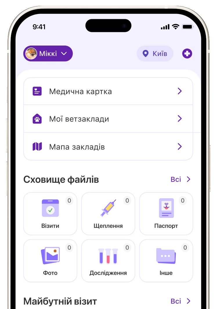 У додатку можна зберігати медичні дані, відстежувати важливі події та швидко записуватись до ветеринарів або грумерів.